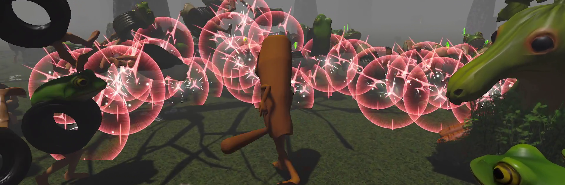 Knockback comedy: Land a clean hit and watch enemies ping off trees for extra damage. The physics sell every whiff, wallop, and glorious faceplant.