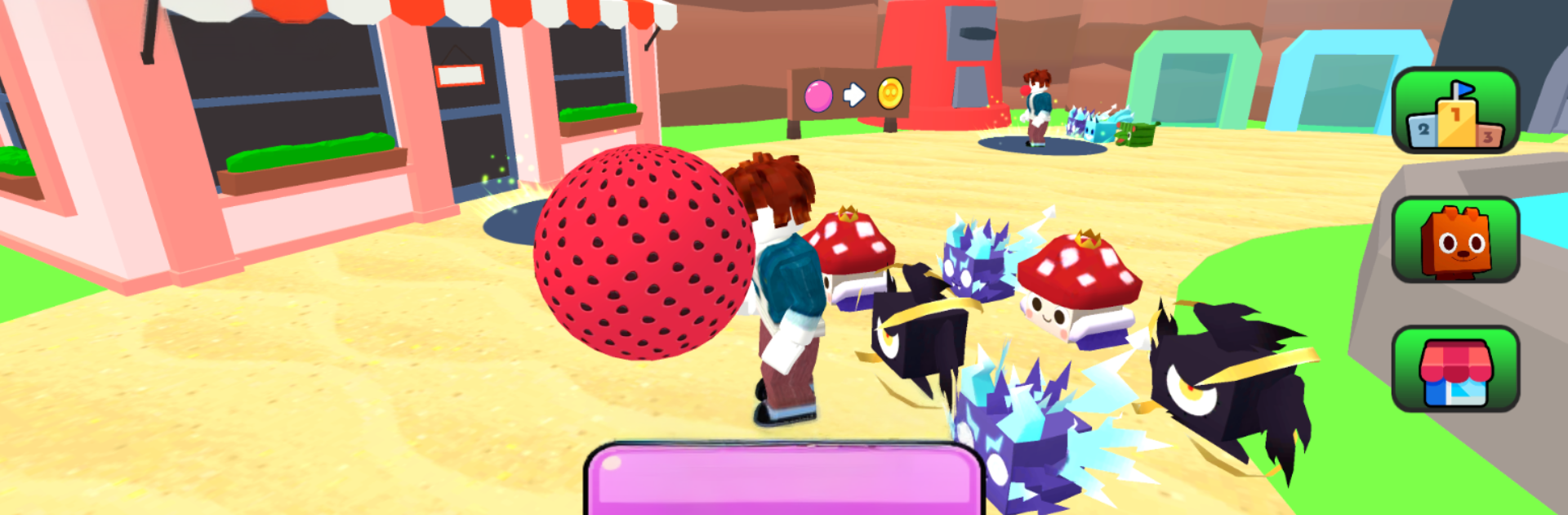 Bubble Gum Simulator is a simple, oddly satisfying loop. A player inflates a bubble, the bubble gets bigger, and jump height goes up with it. Keep pumping air and the character bounces from cloud to cloud, opening little floating islands with shops, chests, and new places to aim for. Pets are the main progression hook. Hatch cute little creatures that boost stats like inflation speed, jump power, and the cash earned when the gum gets sold. Numbers climb, islands stack above the sky, and there is always another cloud just a bit higher than the last one.