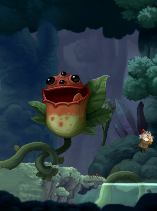 Chronology is a side scrolling puzzle platformer where time is the main toy. It puts the player in control of an Old Inventor and a helpful Snail, swapping between them to solve little clockwork problems. The hook is flipping between past and future to change the same scene, so a broken bridge in the present might be intact earlier, and a seed in the past becomes a climbable plant later. There is also a time freeze that lets players lock hazards or moving platforms in place, then push and pull objects to set up neat chain reactions. The Snail moves differently and can reach places the Inventor cannot, the Inventor handles gadgets and switches, and puzzles often ask for a simple but satisfying combo of both.