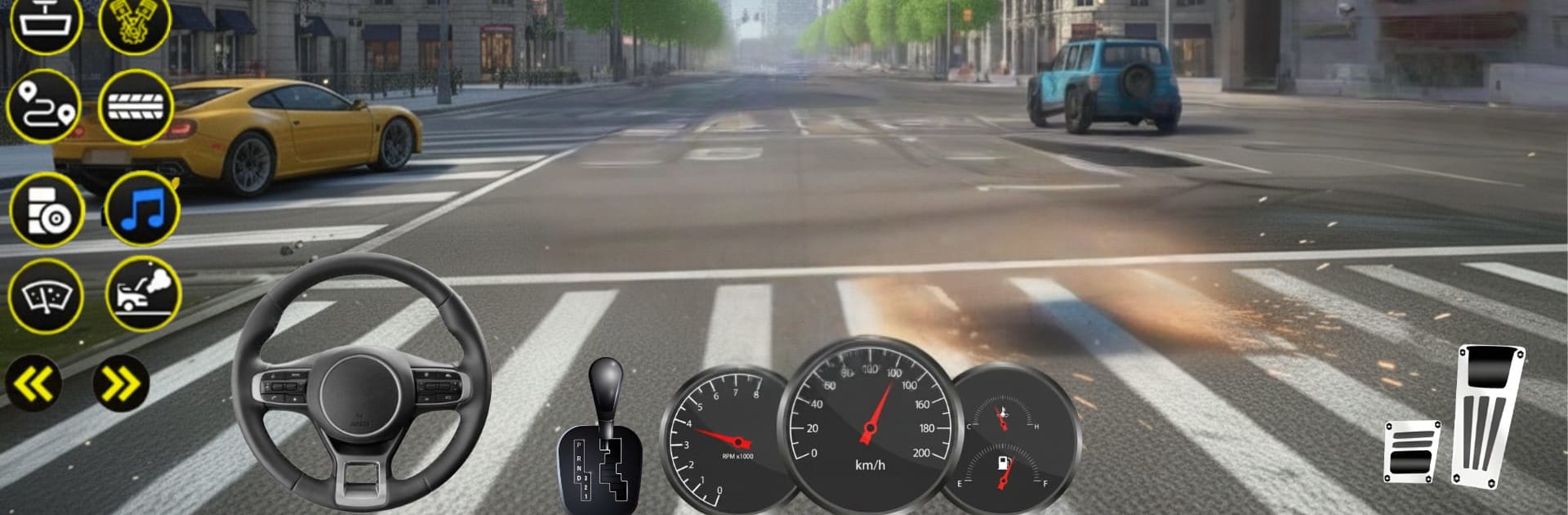 Build a garage of sedans, SUVs, supercars, and off-road beasts. Hear distinct engine notes, explore detailed interiors, and switch to manual transmission with an H-Shifter and clutch if you want full control. -