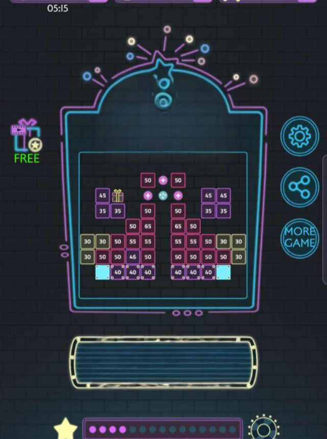 Neon Bricks is that classic brick breaker idea with a loud neon glow and a whole lot of bounce. The screen fills with numbered blocks sliding down each turn, and the job is simple but tense: aim a stream of balls, bank shots off the walls, and chip those numbers to zero before anything touches the floor. It starts super chill and turns into this little angle puzzle, where a clean ricochet wipes a whole column and the sound effects pop in a very satisfying way. Items help when the board gets messy, so there is always that little lifeline when a row is breathing down the edge. The levels are quick to clear, almost snack sized, and there are a ton of them, plus an endless mode for anyone who wants to zone out for a long stretch.