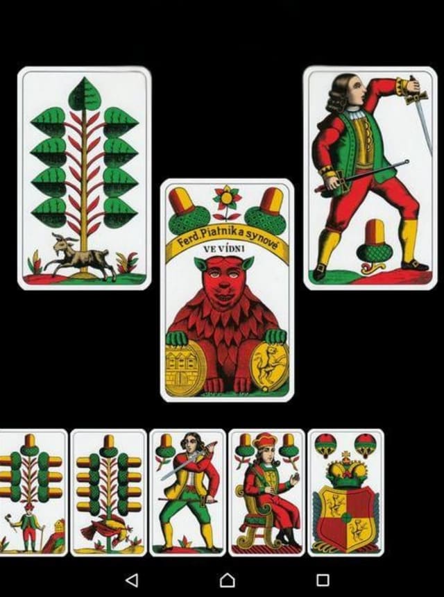 Authentic card decks: Play with officially licensed PIATNIK designs, a deck inspired by 19th‑century caricatures, or hand‑painted KARBANÍK cards. Suits like Leaves, Balls, Hearts, and Acorns give the game that traditional feel.