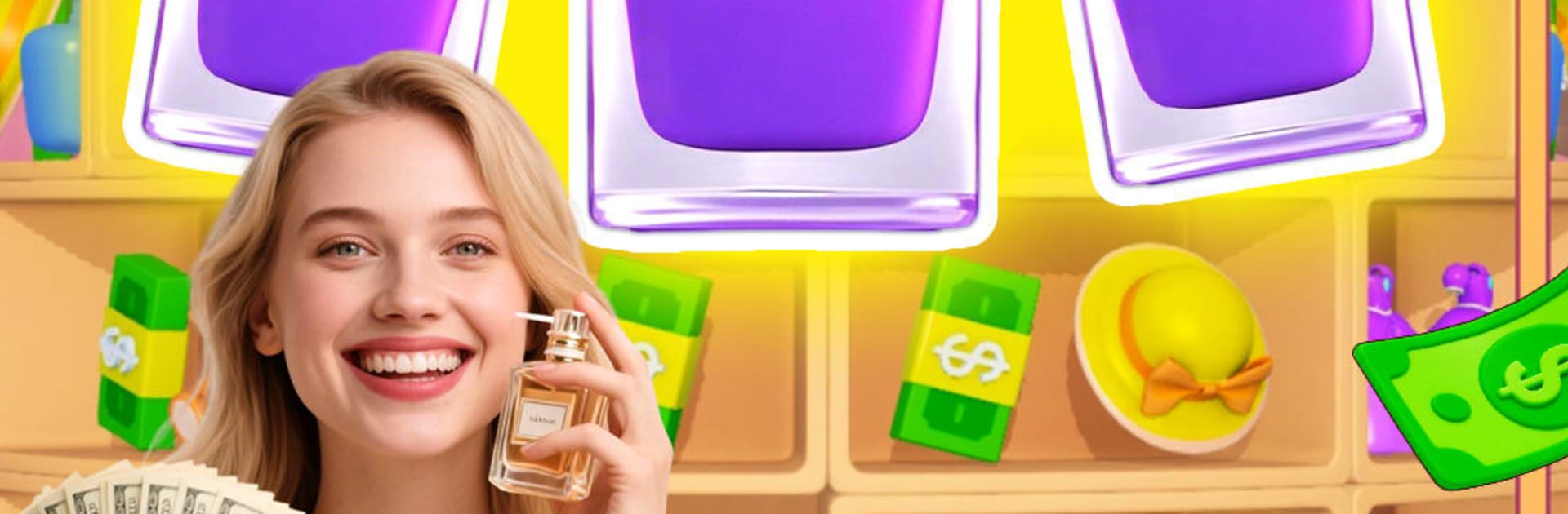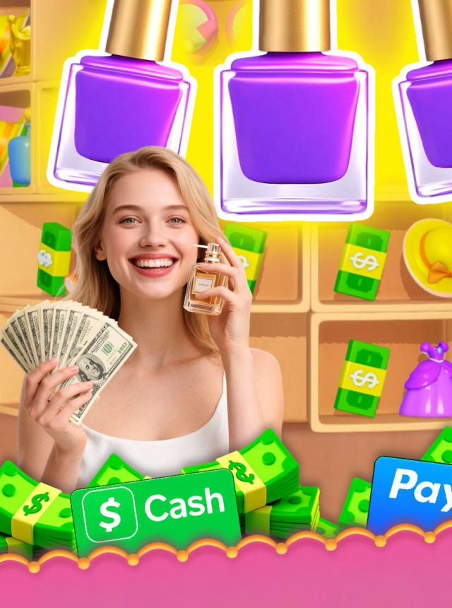 Beauty Shine is a chill match game with a neat twist. Everything sits on a glossy 3D shelf that actually spins, so players rotate it to spot lipsticks, creams, and perfume bottles hiding behind each other. The goal is to drag items into a small holding bar and line up three of the same. When that trio lands, it pops with a sharp little glass crack effect and frees space again. The catch is that the bar fills fast, so tossing things in at random will clog it, and once it is full the run ends. It feels part puzzle, part quick reaction, like organizing a makeup shelf while the clock is quietly ticking.