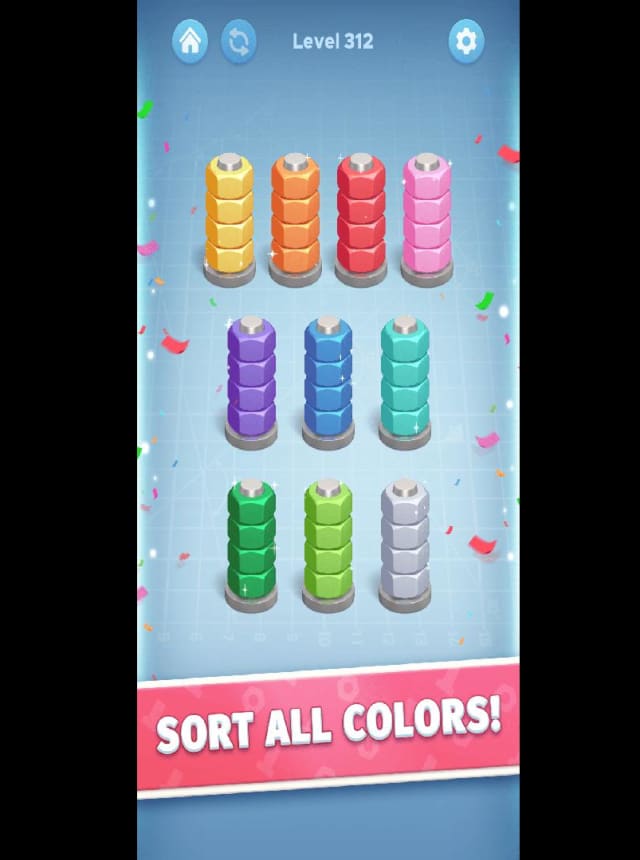 Nut Color Game – Sort Puz 3D is a laid-back puzzle experience that’s all about matching and stacking colorful nuts onto their rightful bolts. It’s the sort of casual game you can pick up whenever you want a bit of a brain tickle without any pressure. The goal seems simple at first—sort the nuts by color—but some levels really make you slow down and think smart about your next move.
