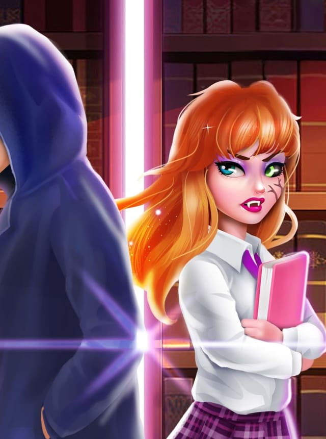 Secret High School 6 – Library feels like a teen vampire drama mixed with dress up and simple mini games. It follows Ashley Collins after a pool party goes wrong and a late-night drive ends worse, then a strange guy shows up, fixes what should not be fixable, and vanishes. Ashley starts changing, fangs and all, and the story swings between school life and trying to figure out who that mysterious man is. The tone is very soap opera, but in a fun way, with cliffhangers and little reveals that keep the next scene tempting.