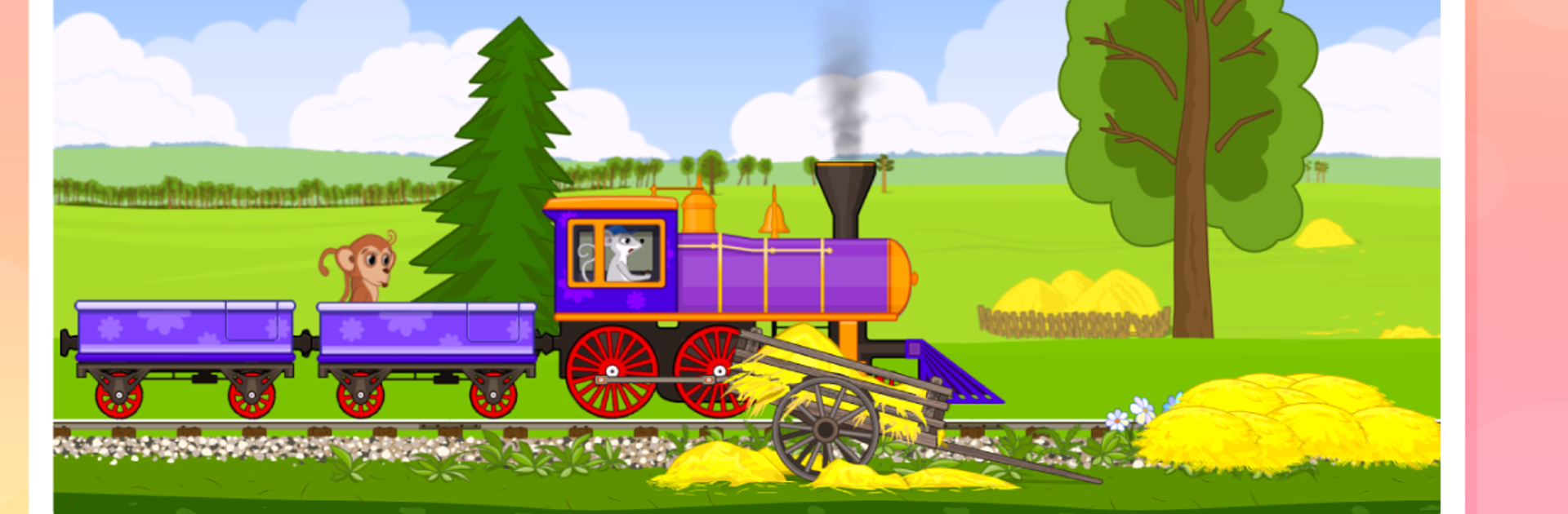 Train for Animals – BabyMagica is a cute little game where you guide a friendly train packed with animals to different stations, and along the way, there’s all kinds of simple, happy stuff going on. The style is cheerful — bright colors everywhere, funny little animals dancing around, with kids’ music playing in the background, so the whole thing feels upbeat and light. The animals aren’t just there for the ride, either. When you get to a station, each animal has a quick mini-activity. The hedgehog gathers falling apples, the rabbit chomps a carrot and does a giggle, a little fox does this silly dance, there’s even a monkey blowing bubbles you can pop. Every station is just another chance for little bursts of activity. Even the train itself is entertaining — it can switch its colors, honk the whistle, spit out colored smoke.