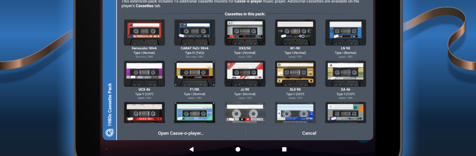 - Easy to find in the app: After installing, open Casse-o-player and check Cassettes > Extension packs to browse and apply your new tapes.