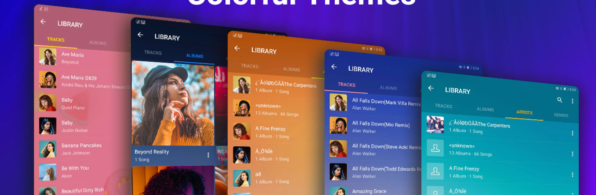 Finding music is easy, whether by albums, artists, folders, or a quick search. Building playlists on the fly works well, the queue can be reordered, and there is shuffle, repeat one, repeat all, plus crossfade for smoother transitions. A sleep timer is tucked in for late night listening. Lyrics show up if they are embedded, and there is a simple tag editor to fix messy metadata. There is even an MP3 cutter for ringtones or notifications, which is surprisingly handy, and it can hide random short clips or ringtone folders so the library stays clean. Themes are a nice touch too, with skins and the option to drop in a custom background from the gallery.