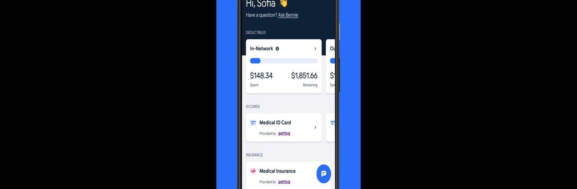 Forget wondering how much coverage you have left. Bennie shows your up-to-date balances and lets you access your insurance ID cards right from your device—even on the go. -