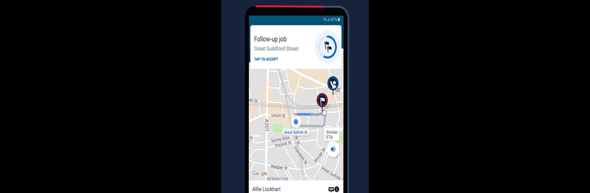 Finished one ride and ready for the next? The app’s built-in system finds nearby requests, so you’re not left circling the block or waiting for something to pop up. -