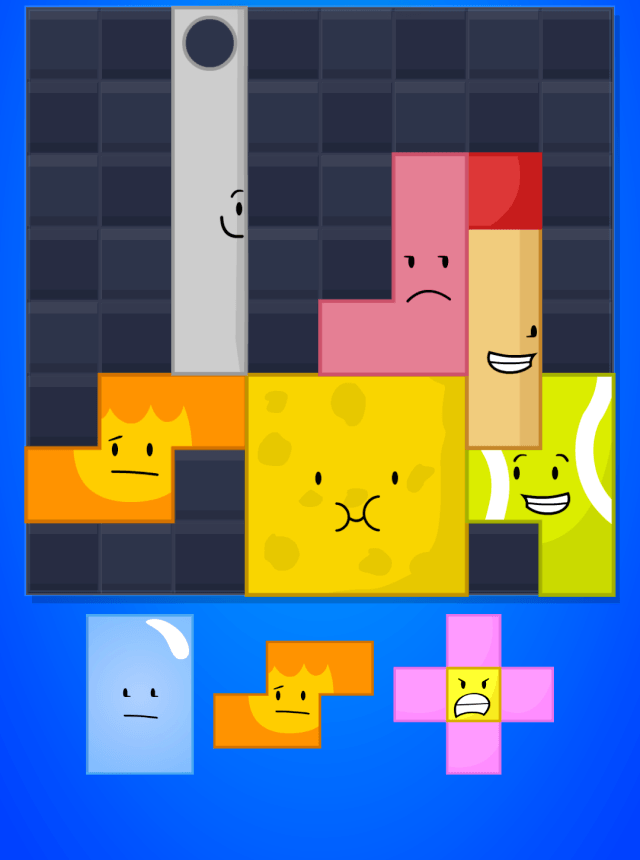- Character Blocks – Fill the board with block-shaped BFDI characters, each piece begging to be tucked into just the right spot.
