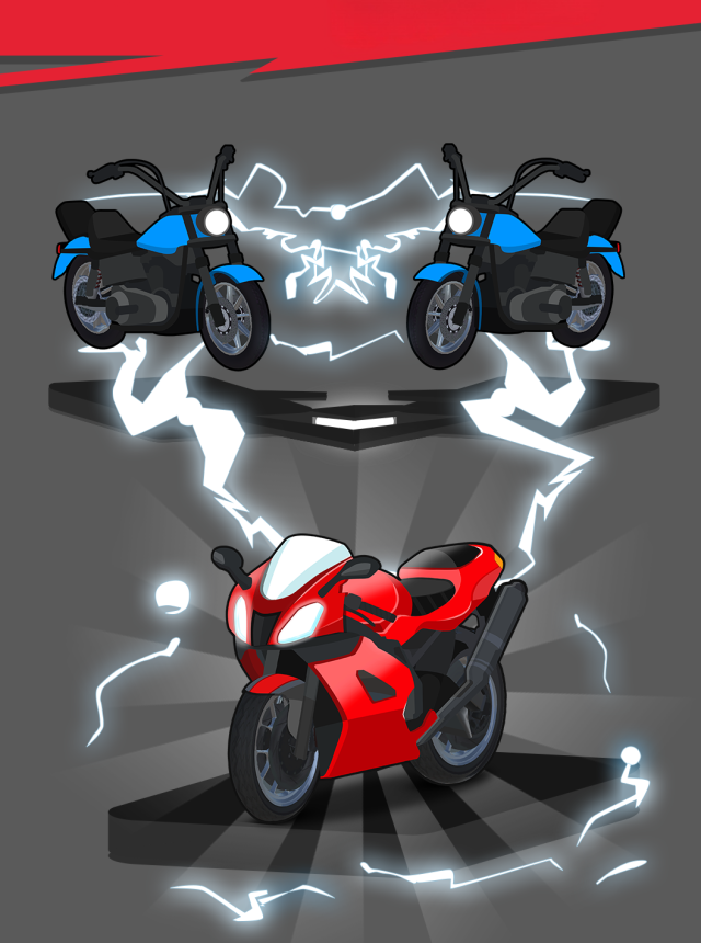 Start small and merge bikes to unlock stronger, more stylish rides. Each upgrade gives your garage a fresh new look and lets you show off your collection. -