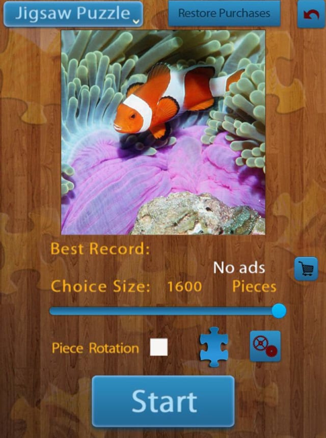 Sea Life Jigsaw Puzzles is exactly what it sounds like, a big box of ocean themed puzzles that feels calm and unhurried. It is full of bright fish, coral, turtles, all that underwater color that makes puzzle pieces easy to spot and kind of satisfying to click together. There are four ways to play. Regular jigsaw is the classic fit-the-shape deal, rotate mode adds a twist where pieces need turning, switch and shuffle mix pieces around the board for a different style of brain tickle. The piece counts range from a tiny 9 pieces up to a huge 1600, so it goes from a quick coffee break to a slow, almost meditative build that can last a long while.