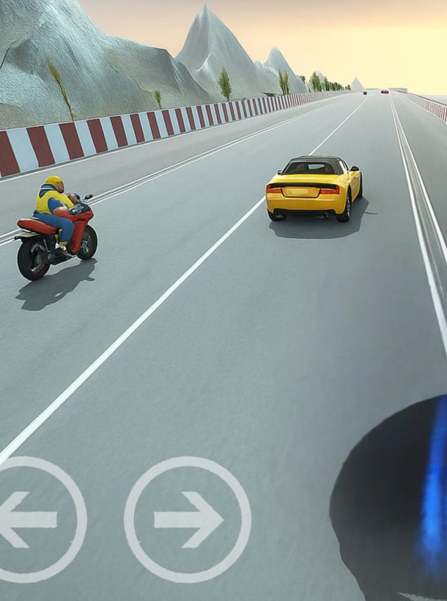 Controls keep it clean with gas, brake, and steering. On mobile there is tilt-to-steer for the bikes, but on PC with BlueStacks the keys make it steadier and easier to correct small mistakes, which helps a lot when traffic packs up. Missions are short, restart fast, and reward clean passes and a bit of stunt energy when a ramp shows up. Crashes look dramatic but mostly just mean lost time. The visuals lean bright and shiny, with nice motion blur and enough traffic variety to keep each run from feeling the same. It plays more like a traffic racer than a sim, good for anyone who likes quick runs, unlocking new stretches, and swapping between muscle of a car and the agility of a bike without a lot of menu fuss.