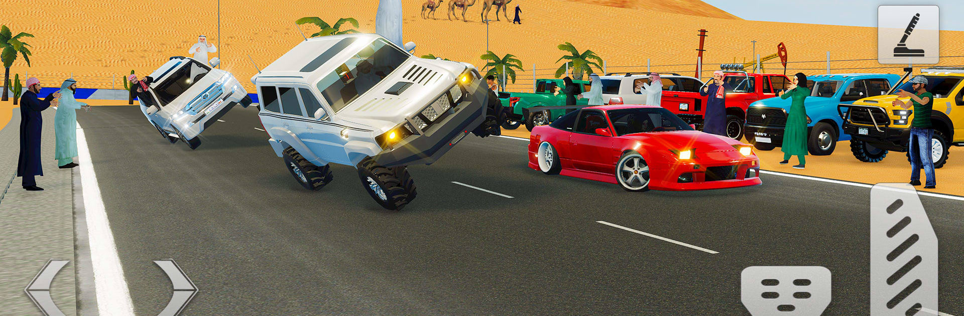 What stands out is the setting. Arabic music, bold art, and regional architecture give every run a distinct look, whether it is dunes at sunset or glassy modern blocks that feel like Dubai. There is a garage full of regional favorites and modern supercars, with paint, decals, rims, and performance upgrades that noticeably change handling instead of just numbers. Tracks range from wide flowing routes built for linking corners to cramped city loops that punish sloppy inputs, and there are online rooms, casual races, and leaderboards for anyone who wants to flex a build or chase a better score.