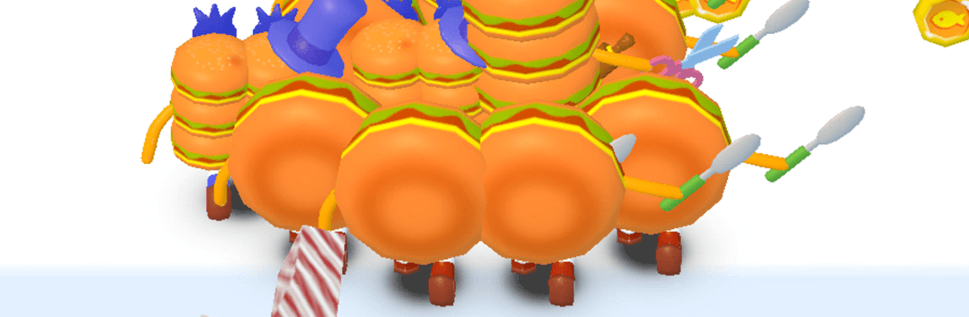 - Runner + Merge Hybrid: Dash through 3D lanes, scoop up food cubes, and combine matching dishes on the fly to stack strength for the finish.