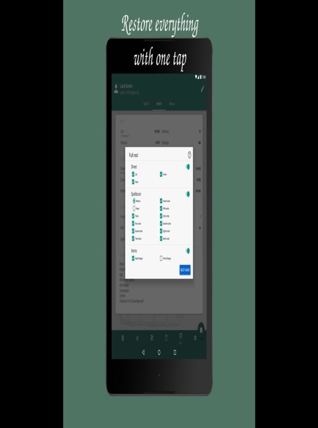 - One-Tap Rest Function: With a single tap, reset your spells, items, and ability uses, making those long rest breaks a breeze.