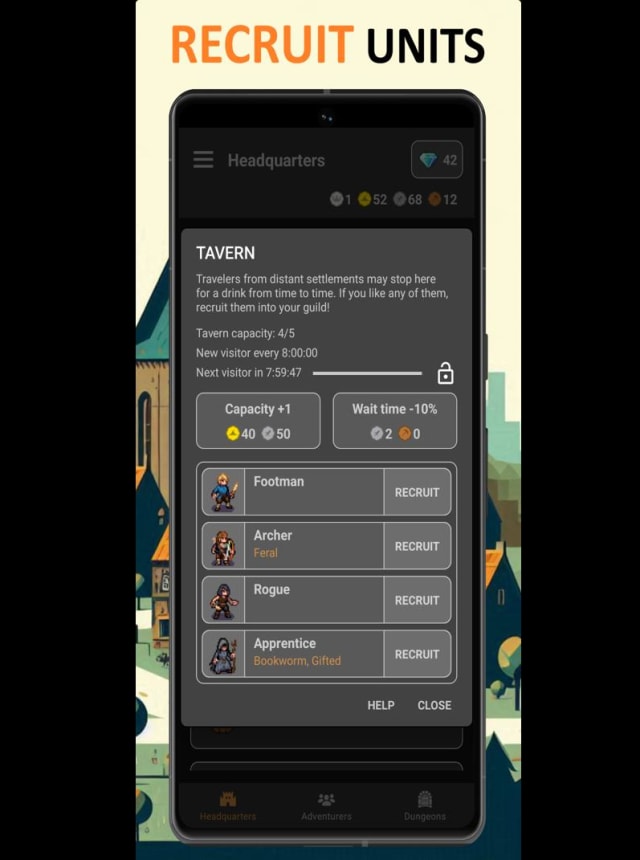 - Grow a Real Guild: Expand facilities to house recruits, sell valuables, and craft artifacts. Your HQ becomes the backbone of your economy and power curve.