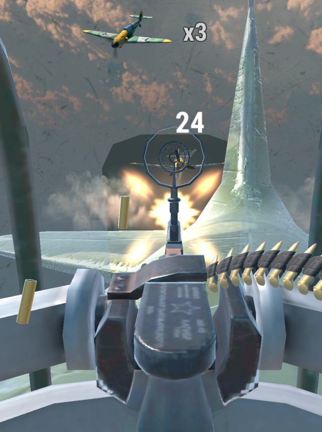One Man in The Sky is a simple turret-shooter with a clear goal. The player sits in a bomber and acts as the gunner, trying to keep enemy fighters off its tail while the big plane chugs along. The whole thing feels like an on-rails defense ride. Fighters peel in from different angles, some head-on, some from the sun, and the job is to track them, lead shots, and keep the bomber from getting shredded. Hits land with chunky sound and bright tracer lines, and when a fighter spirals down it is surprisingly satisfying. Controls are straightforward, point and shoot, maybe a quick tap to swap view or adjust zoom, no long menus or busywork. It ramps up fast, so missing a couple passes can snowball. Tunnel vision is a real risk, so target priority matters, knock out the closest threat, then clean up.