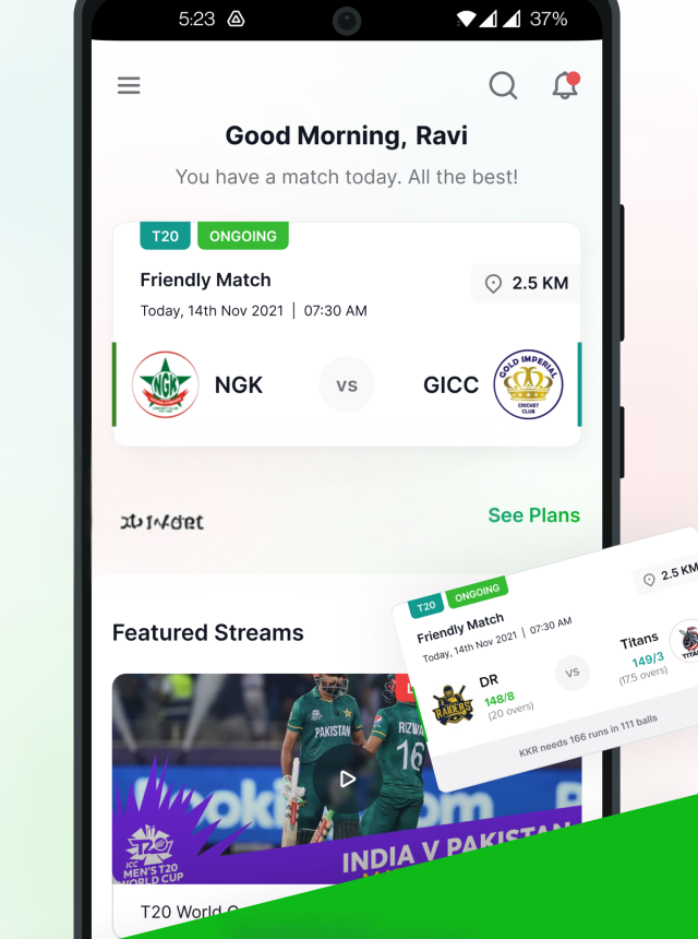 - Player dashboard: Track batting and bowling numbers, join teams, invite friends, and keep your profile up to date.