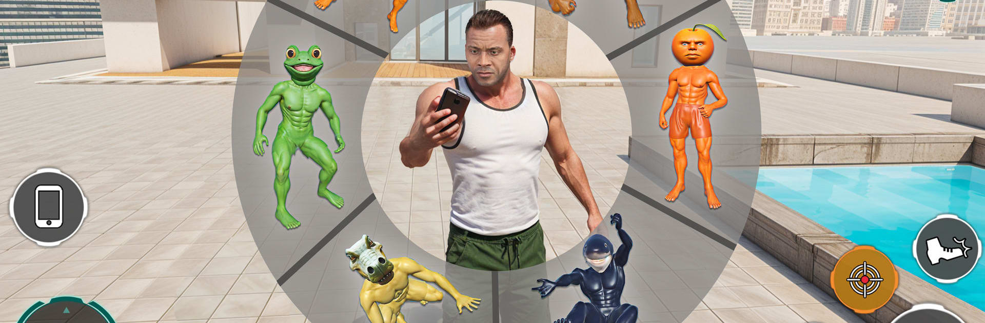 Vehicles are the other half of the fun. It lets players steal sports cars, tanks, helicopters, jets, a hoverboard, even a horse, and the handling stays very arcadey so stunts are easy to pull off. There are simple cheat codes to pop iconic cars instantly, like Ferrari 8811 or Lamborghini 3333, and a bunch for bikes as well, which suits the game’s anything-goes tone. Missions are quick and push action over story, so it is good for short bursts or for wandering off and picking fights. On PC with BlueStacks, keyboard driving and mouse aiming smooth out chases a lot, and the city reads better on a bigger screen. The visuals are clean for mobile, hits land with chunky feedback, and there is always another toy to try or rooftop to clear, almost too many, in a good way.