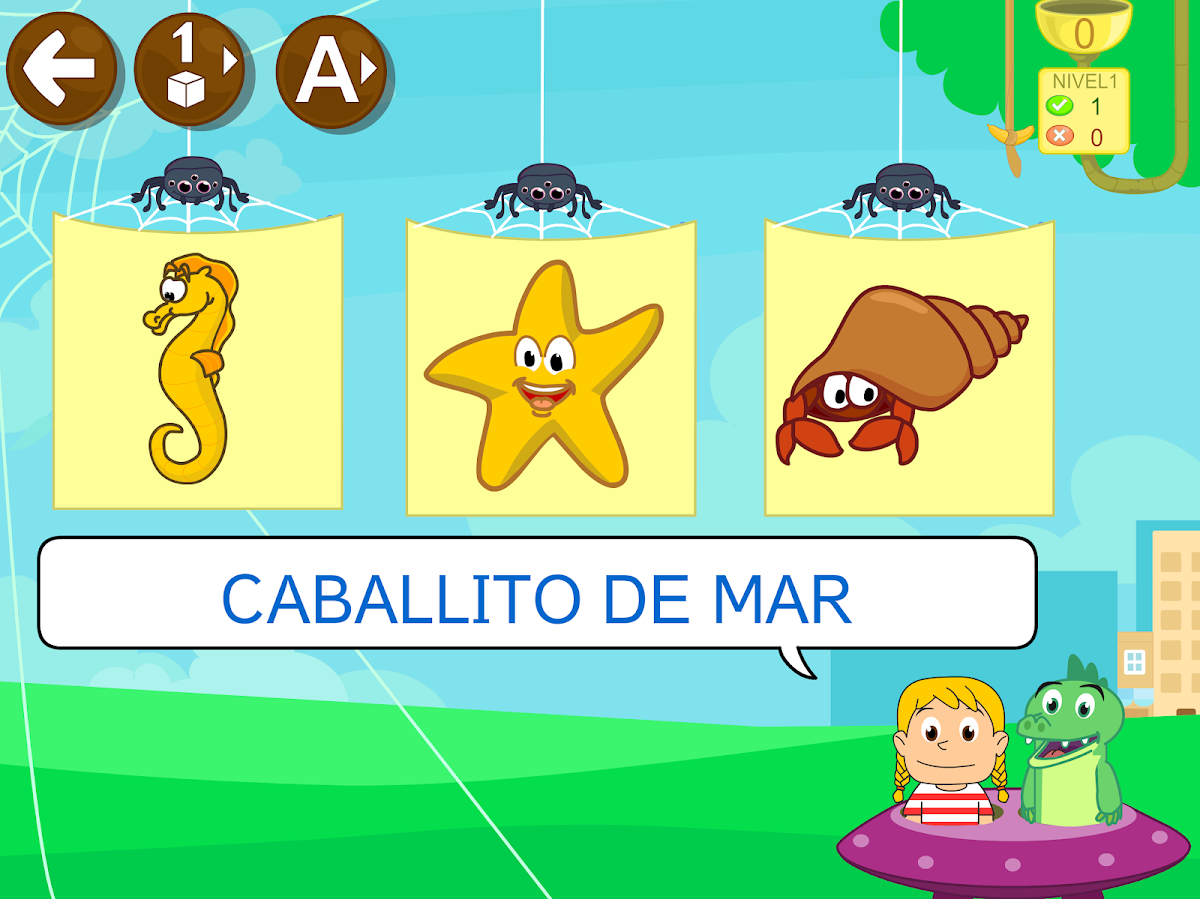 Klicke auf dem Startbildschirm auf das Primeras palabras Grin y Uipi Aprender a leer Symbol, um mit dem Spielen zu beginnen