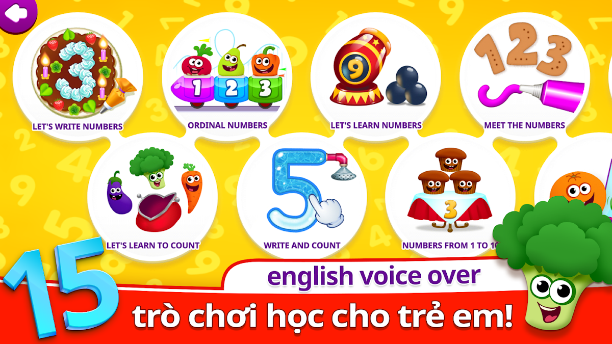 🤓Học đếm, làm quen trẻ em với số cho trẻ em và cho chúng bước đầu tiên của họ đối với toán và viết con số.