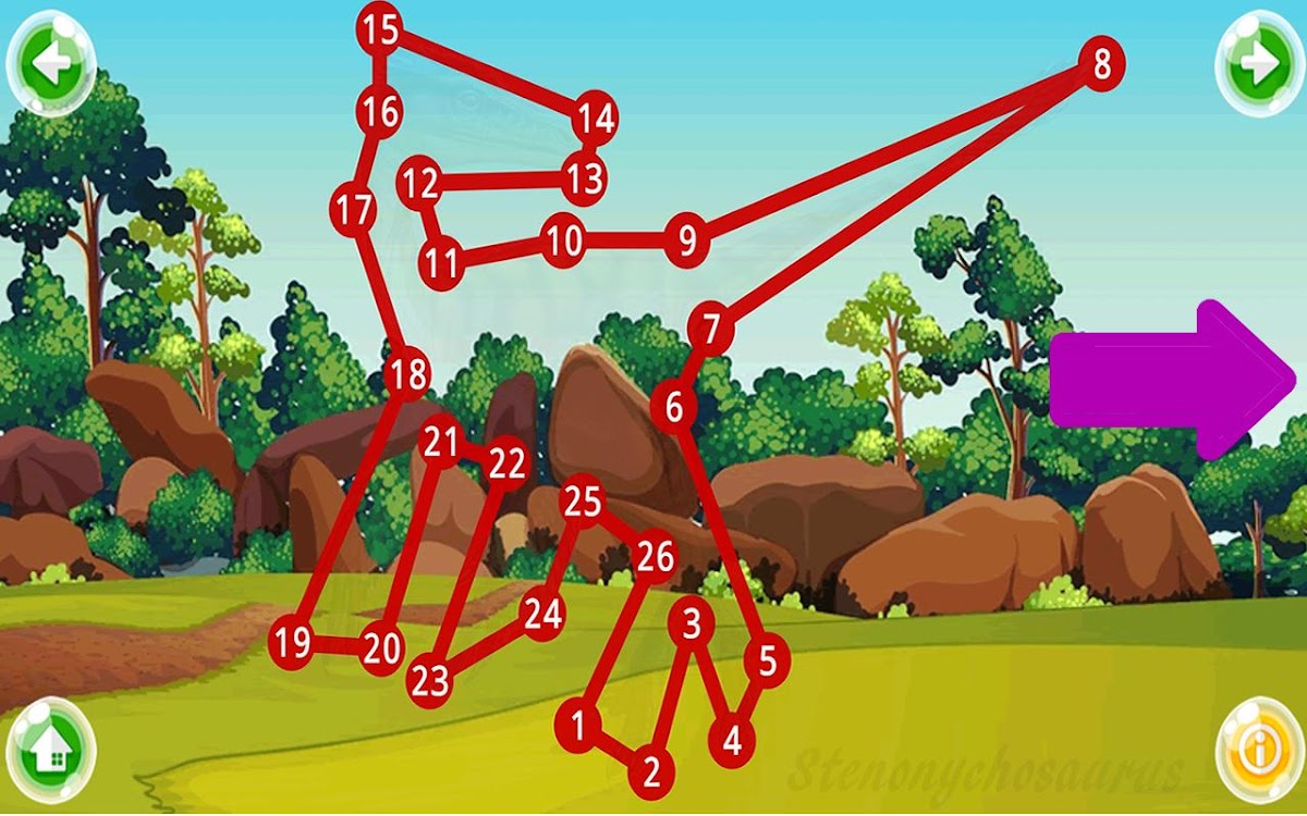 Klicke auf dem Startbildschirm auf das Verbinde die Punkte - Dinosaurier Symbol, um mit dem Spielen zu beginnen