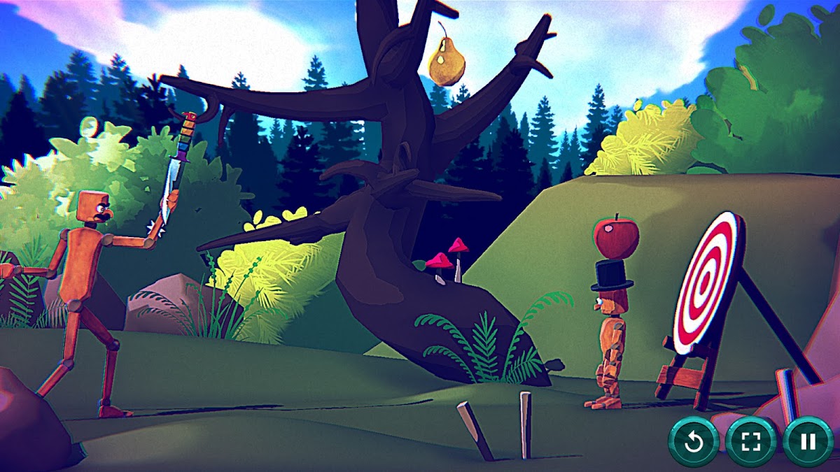 Kannst du den Apfel auf den Kopf treffen? Spielen Sie zum Spaß oder seien Sie der beste Werfer im Wald!