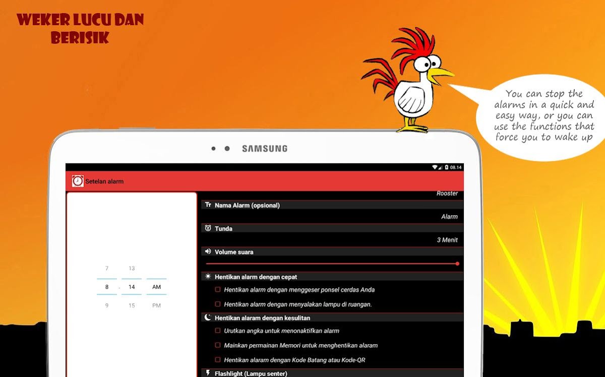 * Hentikan alarm dengan menggeser ponsel cerdas Anda