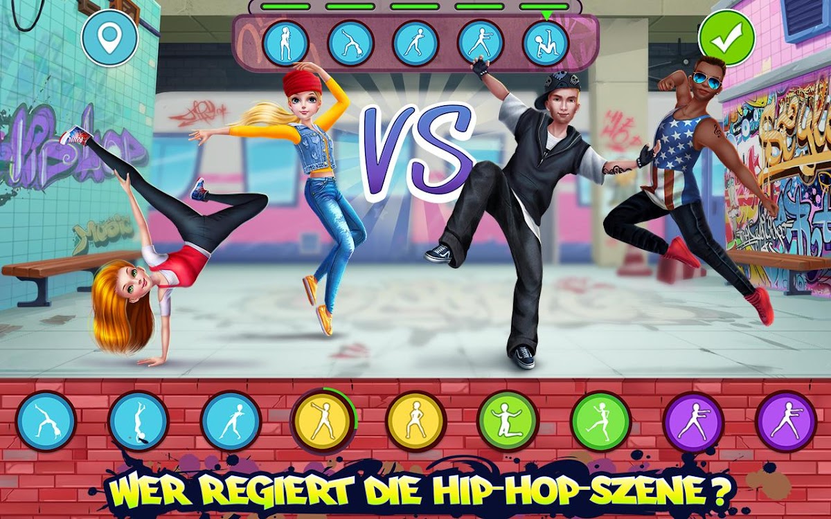 Klicke auf dem Startbildschirm auf das HipHop-Battle- Mädels vs Jungs Symbol, um mit dem Spielen zu beginnen