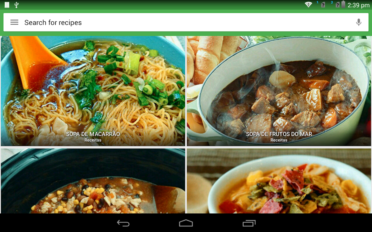 Procure por receitas de sopa na barra de pesquisa no canto superior direito