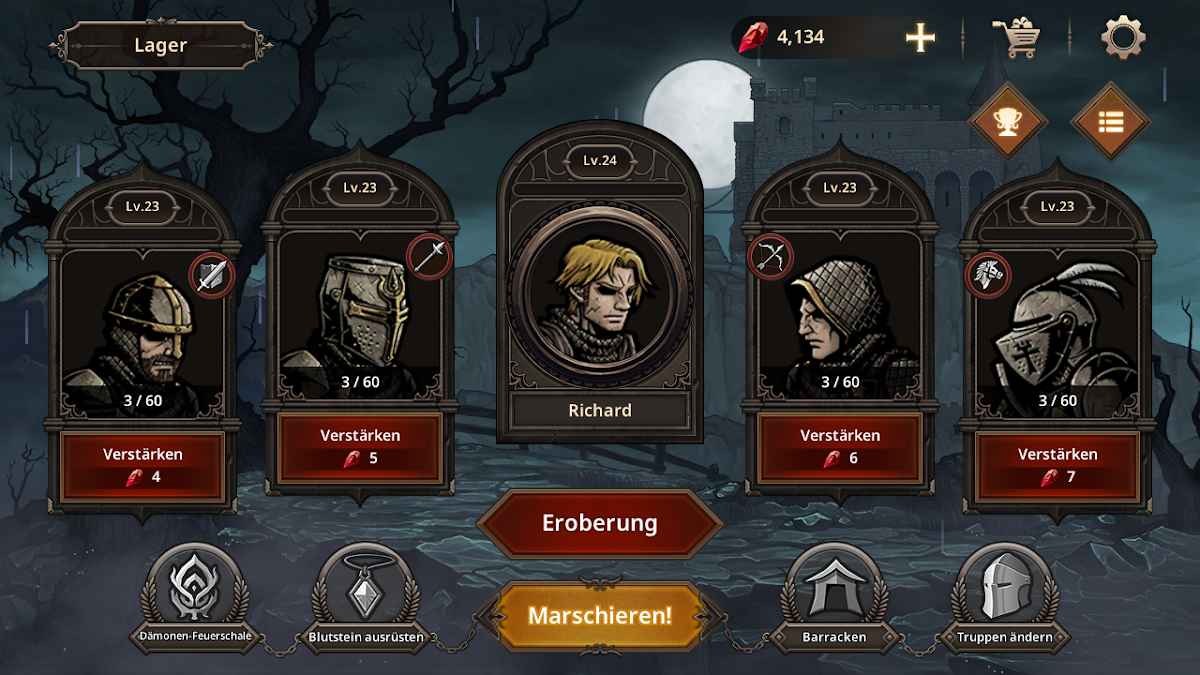 ■ Extrahiere Blutsteine, um Soldaten, Gegenstände und Fähigkeiten zu verbessern.