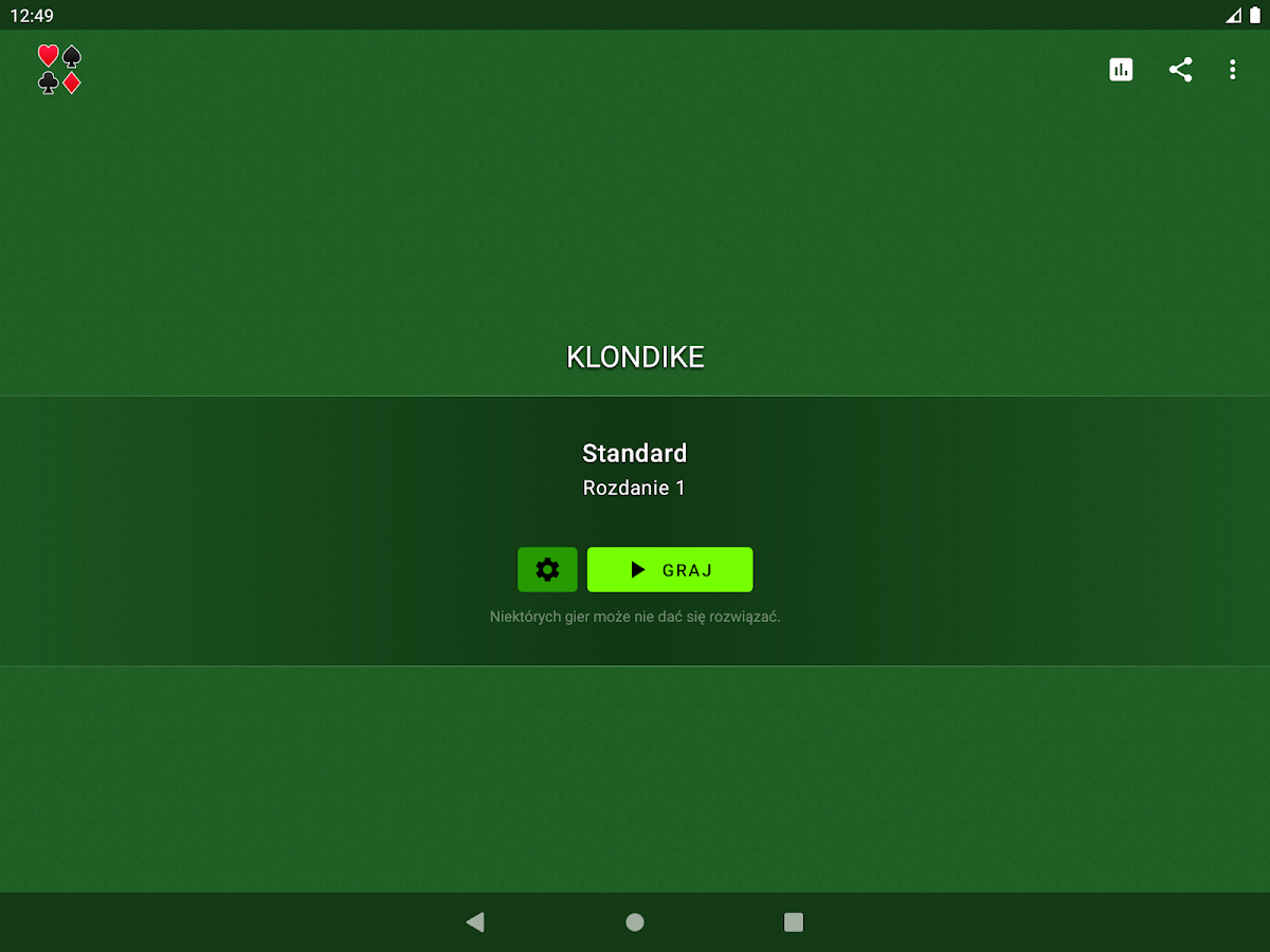 Klinij w ikonę Pasjans na ekranie startowym, aby zacząć grę