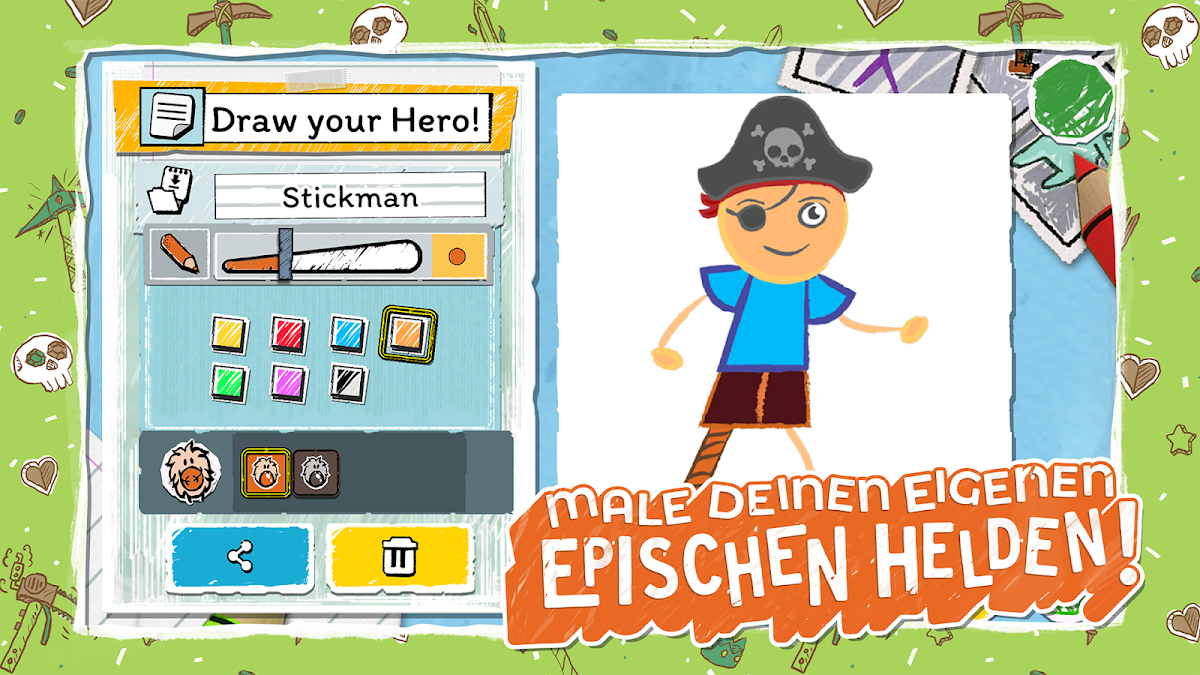 Nutze die neuen, ausgearbeiteten Zeichenwerkzeuge, um den perfekten Helden zu entwerfen! Deiner Kreativität sind keine Grenzen gesetzt – dein Held kann all das sein, was du zeichnen kannst!