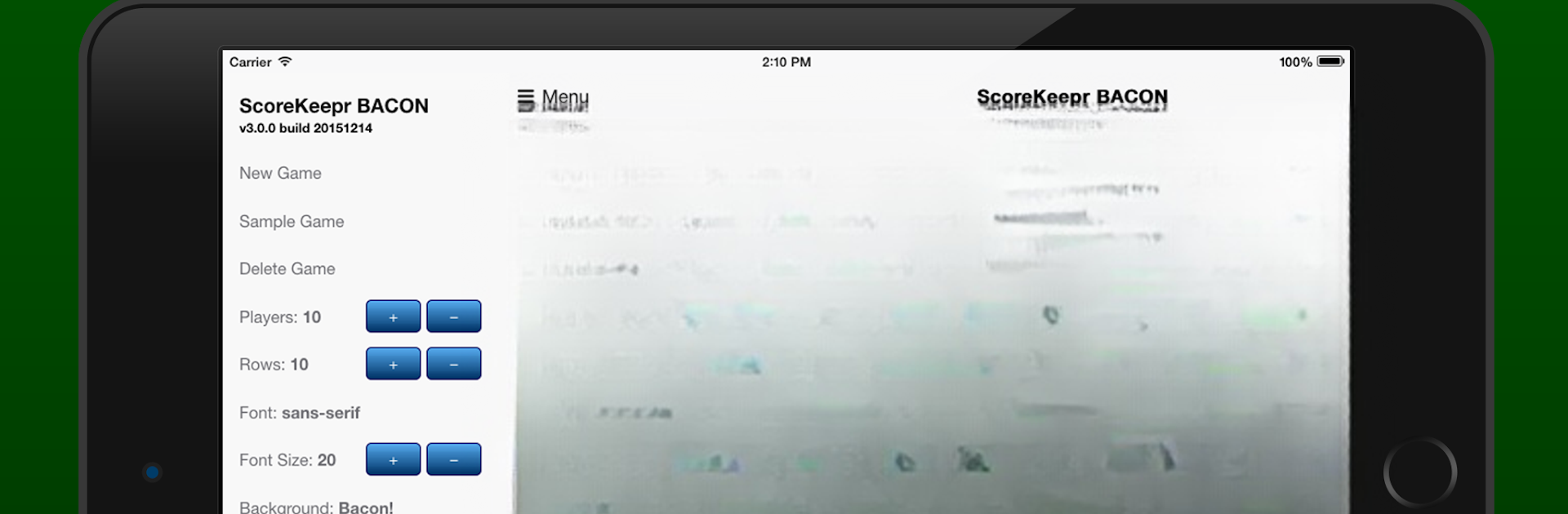 Want to play with a big crew? No problem. Score Keeper BACON can handle up to 99 players and 99 rounds—bring on the chaos! -