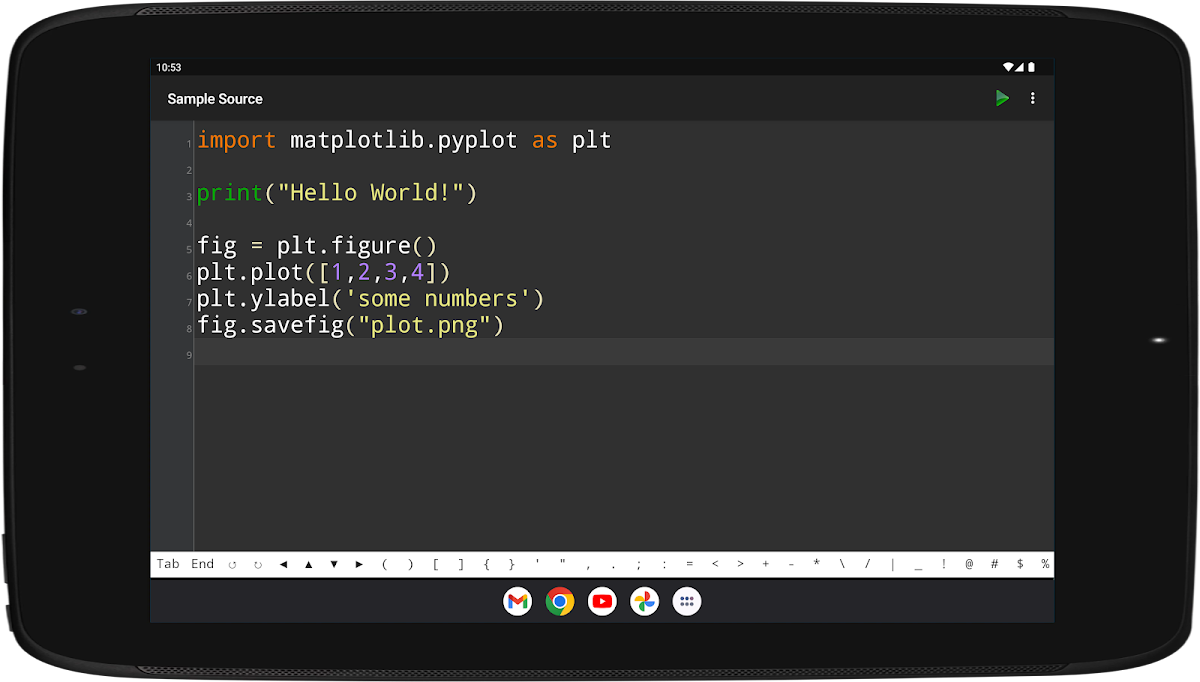 Haz clic en el ícono Python Programming Interpreter en la pantalla de inicio para comenzar a jugar