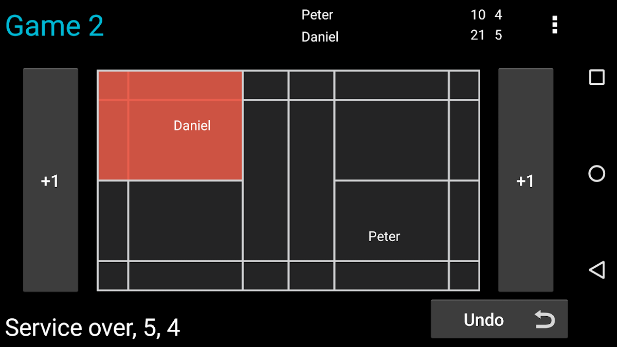 Das manuelle Nachverfolgen von Spielständen während intensiver Ballwechsel oder nach einer Pause kann stressig sein. Diese App nimmt Ihnen diese Last ab, indem sie Ihnen genau anzeigt, was nach jedem Punkt zu sagen ist, und Ihnen eine übersichtliche, interaktive Spielfeldübersicht bietet. Tippen Sie einfach auf die richtige Seite, wenn ein Punkt erzielt wurde – die App erledigt den Rest.