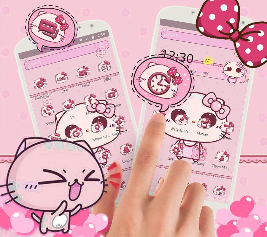 Pink Cute Kitty Bowknot Theme