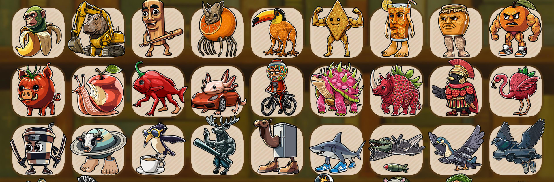 Offbeat roster: Collect a gallery of oddballs—think sneaker-wearing sharks, drumstick brutes, and appliance-born crustaceans—each with their own quirky animations and personality.