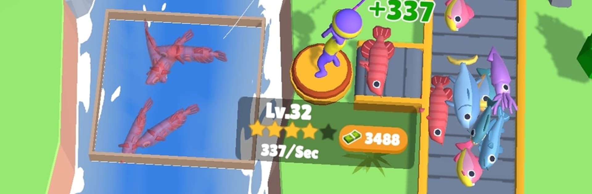 Funny Fish Idle is a laid back clicker where a tiny pond turns into a busy little fish setup, one upgrade at a time. It starts simple. There is a small pond, some small fish to feed, and a meter that fills fast enough to keep attention. Coins roll in, upgrades make the fish and pumps work faster, and before long there are multiple ponds earning on their own while the player tweaks the next thing. There is a hiring bit that automates parts of the pond, and that is what opens the door to bigger hauls and those larger ships the game keeps teasing. It is all very no stress. Numbers go up, ponds unlock, boats get bigger, and the pace stays smooth rather than hectic.