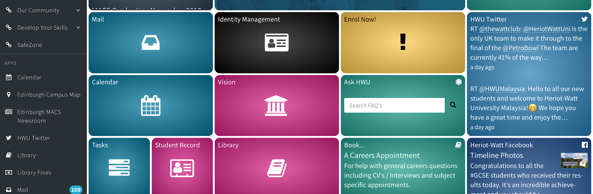 myHWU feels like a single hub for Heriot-Watt life, the kind that keeps a student from bouncing between a dozen tabs. It pulls the usual important stuff into one place and keeps it tidy. There is a light email view so messages are quick to scan, a simple day calendar that shows what is coming up, and course details from Vision without digging around. The Resource Booker is straightforward, pick a study room, pick a time, done. Campus maps list the main buildings and landmarks so a new student does not wander in circles, and the campus news feed keeps an eye on what is happening across the UK, Malaysia, and Dubai. There is LinkedIn Learning tucked in for quick lessons, and the library search gets to databases without wading through a big website. The dashboard is customisable and those changes sync, so tiles moved on one device show up the same everywhere.