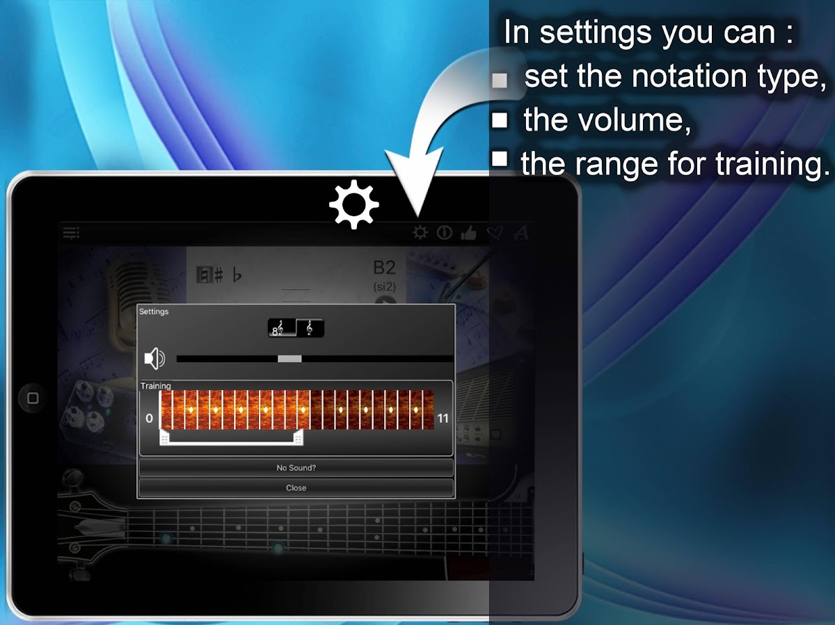 The “Note Trainer” asks for the notes showing you the frets and offers the full statistics to show where you are making mistakes, so you can measure progress in sight reading and see when you’ve exceeded your personal best.