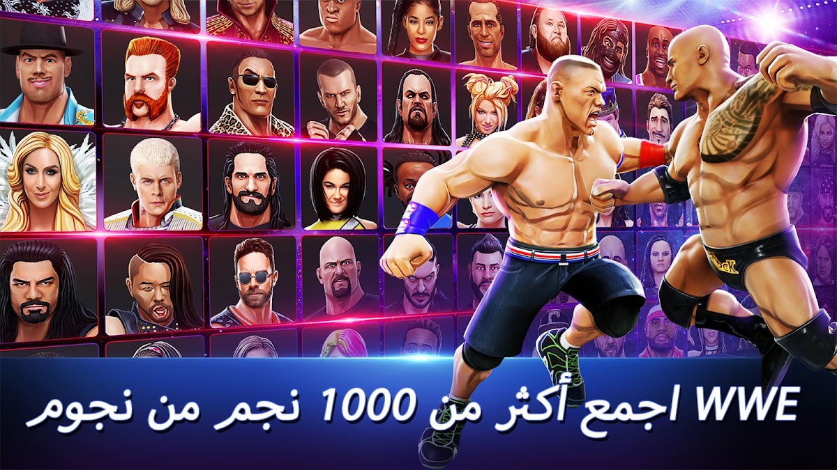 اختر من قائمة متزايدة من نجوم WWE و Legie الأسطورية ، بما في ذلك: John Cena و The Rock و Andre the Giant و Triple H و Xavier Woods و AJ Styles و Stone Cold ستيف أوستن و Roman Reigns و Randy Orton و Sting و Seth Rollins و Jinder Mahal و و Big E و Fiend و Charlotte Flair و Bayley و Asuka و Alexa Bliss وغيرها الكثير.