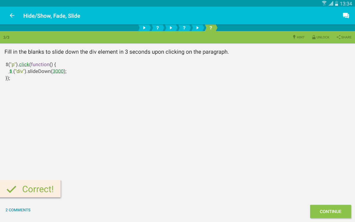 คลิกที่ไอคอน Learn jQuery ในหน้าจอเพื่อเริ่มเล่น