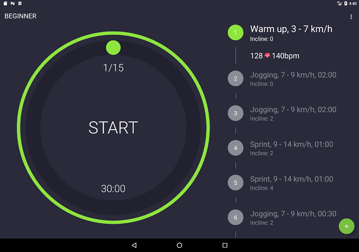 Klicke auf dem Startbildschirm auf das Treadmill Workout Symbol, um mit dem Spielen zu beginnen