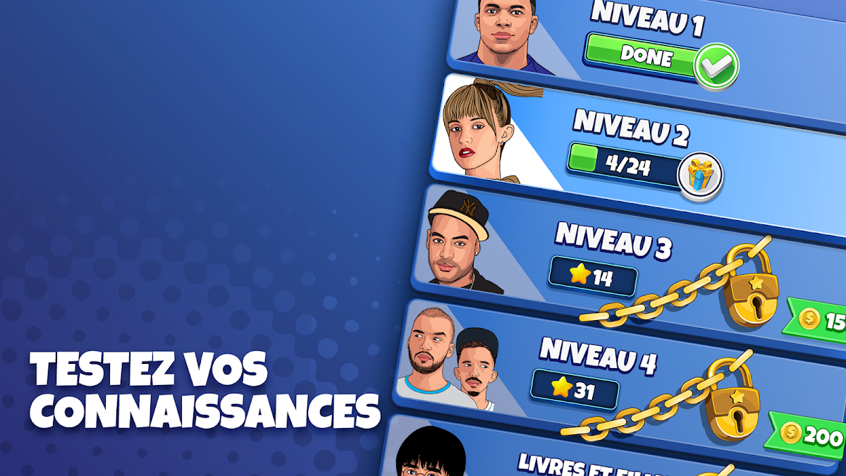 Avec des centaines de niveaux et des milliers de célébrités à deviner, ce jeu est garanti pour vous divertir pendant des heures. La meilleure partie? C'est entièrement gratuit de jouer!