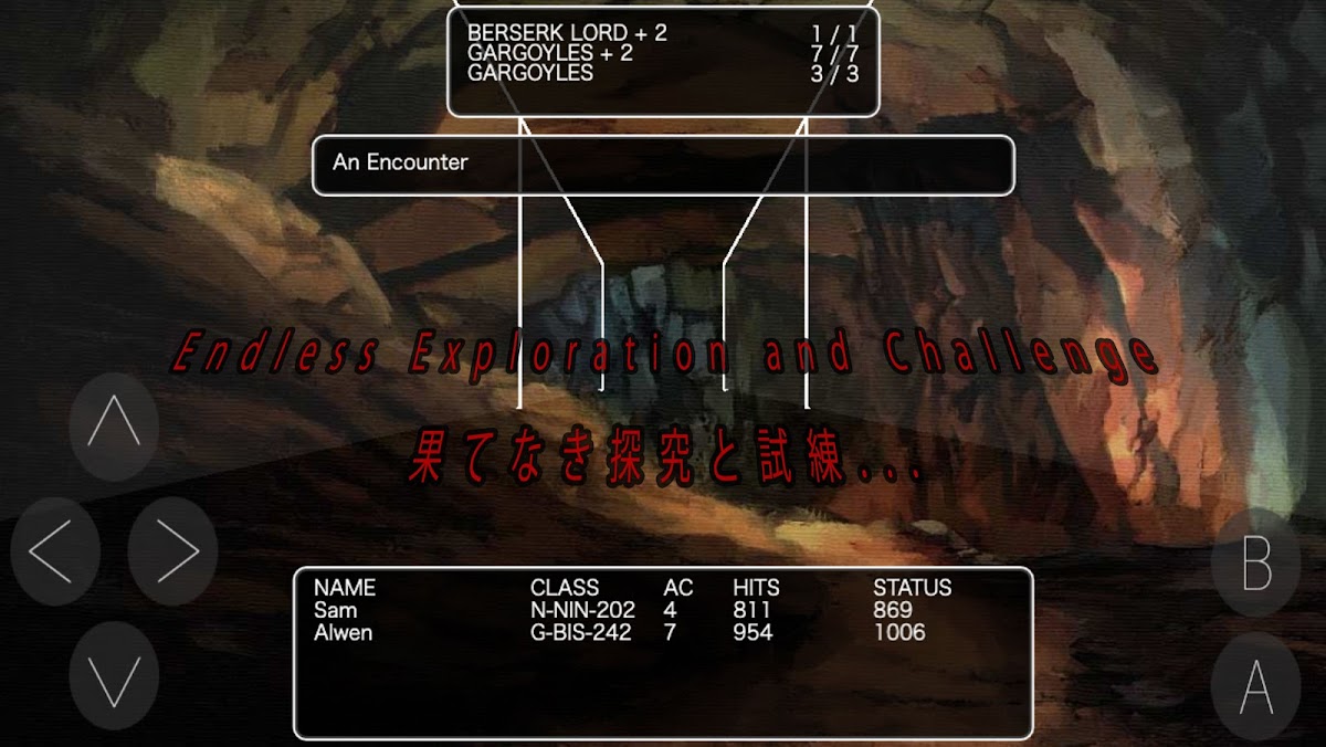 シンプルな操作性と文字ベースの質素なグラフィックスで快適な迷宮探索がプレイ可能です。