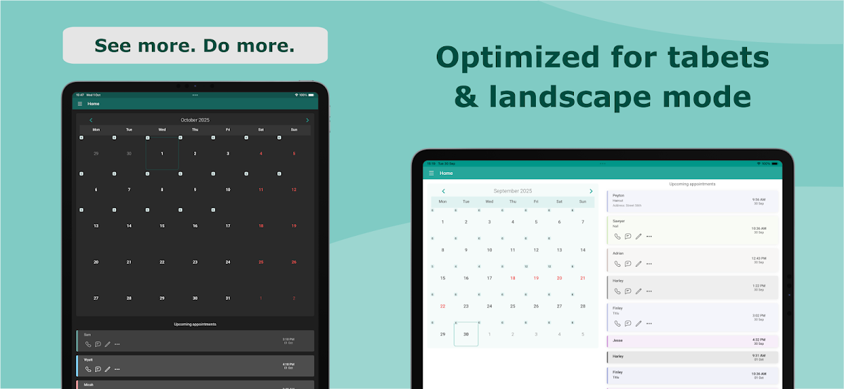 クライアントのアポイントメントを手軽に管理し、仕事のスケジュールもスマートアプリで管理できます。状況をコントロールし、時間を節約し、クライアントに集中してビジネスを成長させましょう。