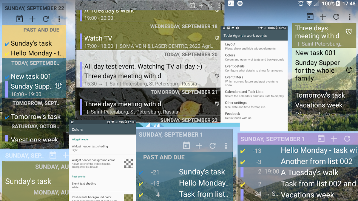 * Crie vários widgets, se você precisar. Cada widget tem suas próprias configurações, incluindo layouts, cores, filtros e calendários selecionados.